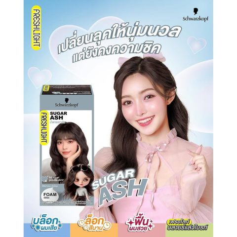 Foam-Sugar Ash โทนแอชละมุน ช่วยให้ลุคดูซอฟต์ ทันสมัย และช่วยลดความติดส้ม/เหลืองของสีผมได้อย่างเป็นธรรมชาติ (ผลลัพธ์ขึ้นอยู่กับพื้นสีผมเดิม)