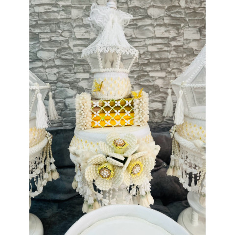 พานชันหมากเอกสีขาวสวยๆขันหมากงานแต่ง เติมความเรียบหรูให้พิธีขันหมากด้วยเซ็ตพานสีขาวงานสั่งทำ โดดเด่นด้วยความประณีตจากการกลึงไม้ทั้งชิ้น เหมาะสำหรับคู่บ่าวสาวที่ต้องการงานพรีเมียม ภาพรวมดูสะอาดตา เข้ากับธีมงานแต่งได้หลากหลาย ทั้งมินิมอล คลาสสิก และไทยร่วมสมัย