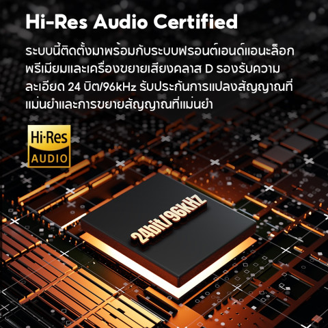 รองรับการเล่นไฟล์เสียงความละเอียดสูง เพื่อให้คุณได้ยินรายละเอียดที่ครบกว่า เหมาะสำหรับผู้ที่จริงจังกับคุณภาพเสียงHi-Res Audio Certified สำหรับการใช้งานผ่านสาย