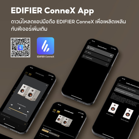 รองรับแอป EDIFIER ConneX Mobile: ปรับ EQ, สลับเอฟเฟกต์, ตั้งค่าชดเชยห้อง, ดูคู่มือผู้ใช้ ฯลฯ