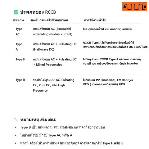 หากเครื่องชาร์จไม่มี DC Protection: ควรเลือก RCCB Type B เพื่อความปลอดภัย (ไม่ควรใช้ Type A เดี่ยว ๆ)