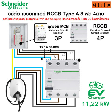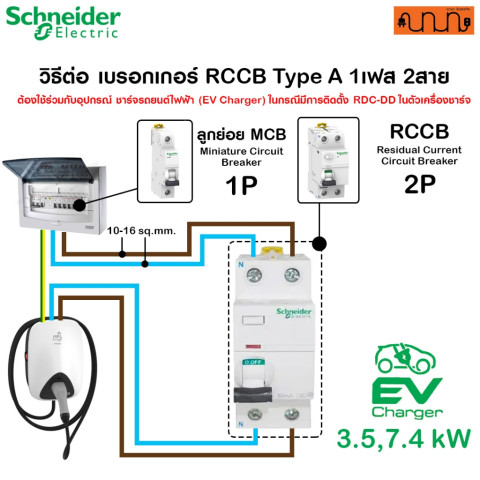 แนะนำ: ควรติดตั้ง RCCB 1 ตัวต่อ EV Charger 1 เครื่อง และเลือกขนาดแอมป์ให้เหมาะกับการใช้งานจริง