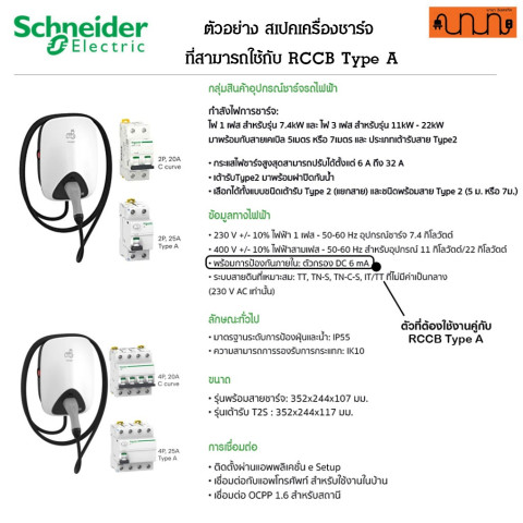 เงื่อนไขสำคัญสำหรับ EV Charger: RCCB Type A เหมาะใช้กับเครื่องชาร์จ EV เฉพาะกรณีที่เครื่องชาร์จมี DC Protection 6mA (RDC-DD) ในตัว