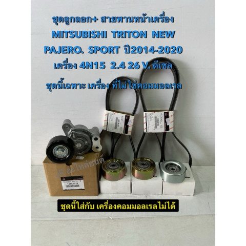 ชุดลูกลอก + สายพาน (แท้ศูนย์/แท้) สำหรับ MITSUBISHI TRITON NEW / PAJERO SPORT ชุดอะไหล่คุณภาพสำหรับงานบำรุงรักษา ช่วยให้ระบบขับเคลื่อนอุปกรณ์หน้าเครื่องทำงานลื่น เงียบ และมั่นใจ เหมาะสำหรับผู้ที่ต้องการเปลี่ยนเป็นชุดเพื่อความครบจบในครั้งเดียว