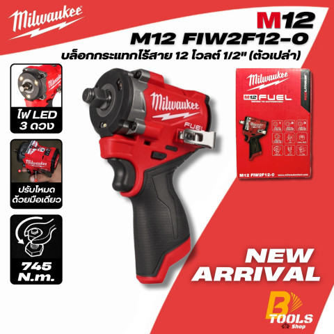 MILWAUKEE บล็อกกระแทกไร้สาย 1/2" (745 Nm.) 12V รุ่น M12 FIW2F12-0 (เครื่องเปล่า) พลังจัดเต็มในขนาดกะทัดรัด ออกแบบมาเพื่อการขัน–ถอดน็อตงานหนักได้อย่างมั่นใจ โดยเฉพาะในพื้นที่แคบหรือมุมอับ ด้วยความยาวตัวเครื่องเพียง 125 มม. จับถนัดมือ น้ำหนักเบา (ประมาณ 1.1 กก. ไม่รวมแบตเตอรี่) ช่วยลดความเมื่อยล้า เหมาะทั้งงานช่างมืออาชีพ งานซ่อมบำรุง และงานยานยนต์ที่ต้องการแรงบิดสูงในพื้นที่จำกัด