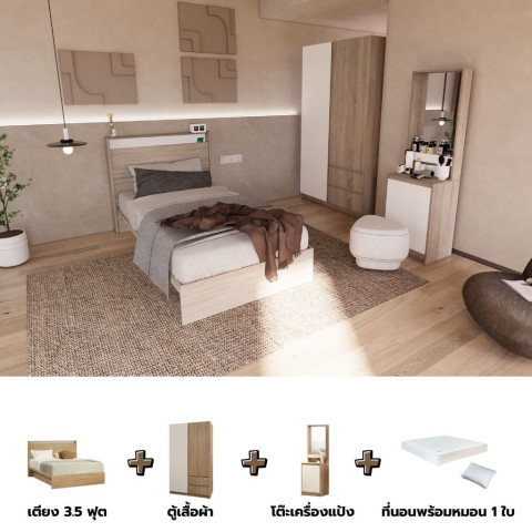 เซ็ตคุ้มค่า: เตียงขนาด 3.5 ฟุต + ที่นอน + หมอน พร้อมใช้งาน