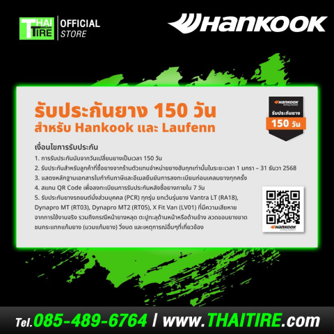 หมายเหตุ: ไม่รวมค่าตั้งศูนย์ล้อ และไม่รวมบริการเติมลมยางไนโตรเจน