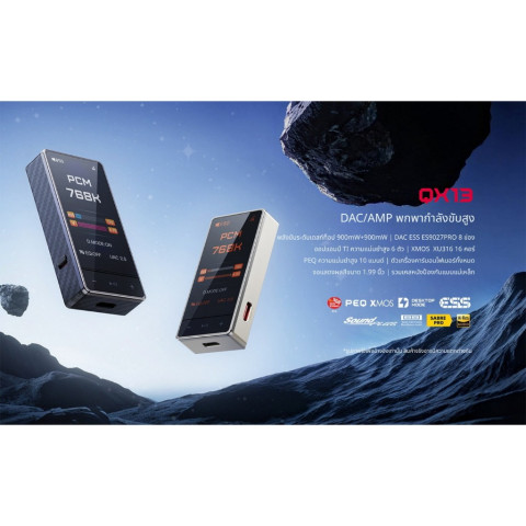 [ประกันศูนย์ไทย] FiiO QX13 DAC/AMP พกพากำลังขับสูง เทียบเท่าเดสก์ท็อป รองรับหูฟัง Balanced/SE ครบ คือคำตอบสำหรับคนที่อยากยกระดับเสียงจากมือถือ/คอมพิวเตอร์ให้ “ชัด ลึก มีพลัง” แบบเครื่องตั้งโต๊ะ แต่พกพาไปได้ทุกที่ ด้วยภาคถอดรหัสและภาคขยายระดับ Hi‑Fi ที่จัดเต็ม ทั้งชิป DAC ระดับเรือธง ESS ES9027PRO, ชิป XMOS 16 คอร์ และวงจรขยายที่ออกแบบมาเพื่อรองรับหูฟังได้กว้างตั้งแต่ IEM ไว ไปจนถึงหูฟังขับยาก พร้อมหน้าจอสีใช้งานง่ายและระบบปรับเสียงแบบ PEQ ครบเครื่อง