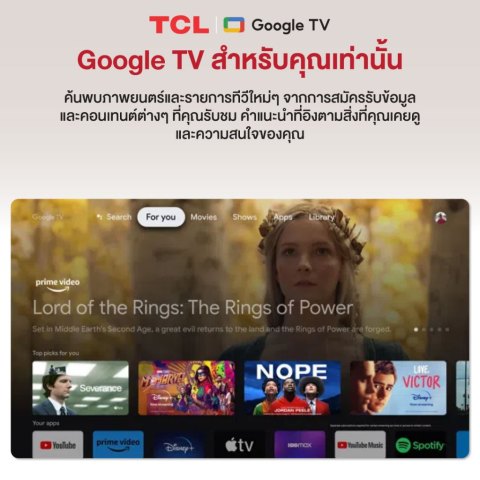 TCL 50 นิ้ว Google TV QLED รุ่น 50S5K (ปี 2025) ทีวีที่ยกระดับความบันเทิงในบ้านให้ “สีสด ภาพคม เสียงแน่น” ในดีไซน์บางเฉียบแบบพรีเมียม มาพร้อมหน้าจอ QLED ที่แสดงสีสันได้แม่นยำ คมชัดระดับ Full HD (1920×1080) และรองรับ HDR10 เพื่อเพิ่มมิติความลึกและคอนทราสต์ของภาพ ไม่ว่าจะดูหนัง ซีรีส์ หรือถ่ายทอดสดกีฬา ก็ได้อรรถรสเต็มตาเต็มอารมณ์ พร้อมระบบ Google TV ที่รวมคอนเทนต์โปรดไว้ในที่เดียว ค้นหาง่าย แนะนำตรงใจ และควบคุมด้วยเสียงได้สะดวก