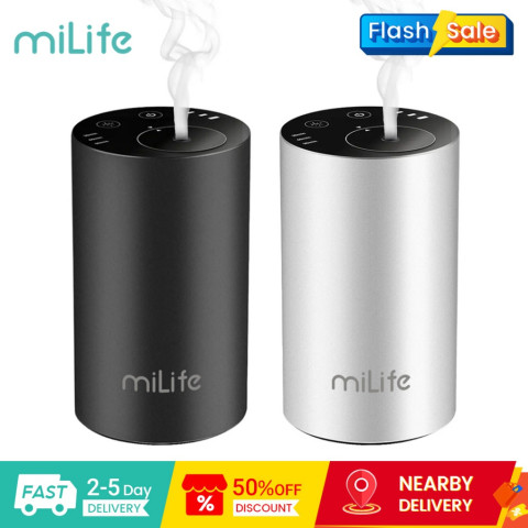 MiLife DA27 เครื่องกระจายน้ำมันหอมระเหย Type‑C ชาร์จได้ พร้อมฟังก์ชันจับเวลา สำหรับรถยนต์และบ้าน (สีเงิน)