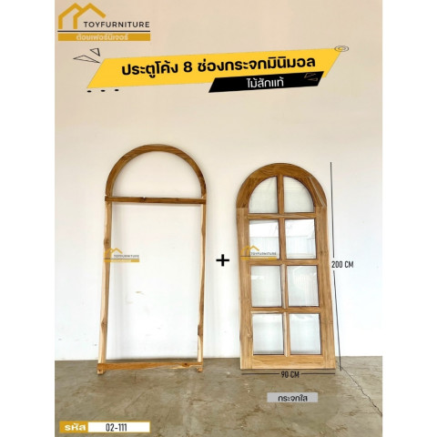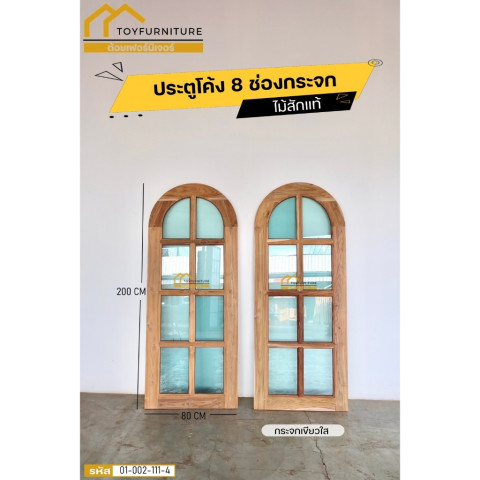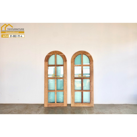 จัดส่งฟรี❗️ประตูโค้ง 8 ช่องกระจกวงรีไม้สักแท้จากโรงงาน ราคา 8,390.00 บาท