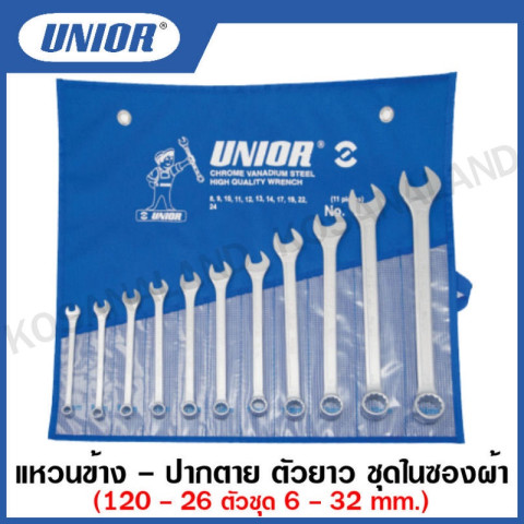 Unior แหวนข้าง - ปากตาย ตัวยาว ชุดในซองผ้า ขนาด 26 ตัวชุด รุ่น 120Set คือชุดประแจคุณภาพระดับมืออาชีพที่รวม “แหวนข้าง + ปากตาย” แบบตัวยาวไว้ครบในเซ็ตเดียว ช่วยให้ทำงานได้คล่องตัวขึ้นทั้งงานซ่อมบำรุงทั่วไป งานช่างยนต์ งานเครื่องจักร และงานติดตั้งในพื้นที่เข้าถึงยาก มาพร้อมซองผ้าสำหรับจัดเก็บเป็นระเบียบ พกพาสะดวก และหยิบใช้งานได้รวดเร็ว