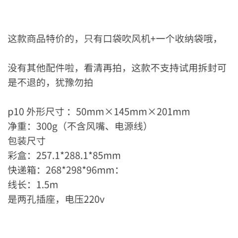 น้ำหนักสุทธิ: 300 กรัม (ไม่รวมหัวเป่าและสายไฟ)