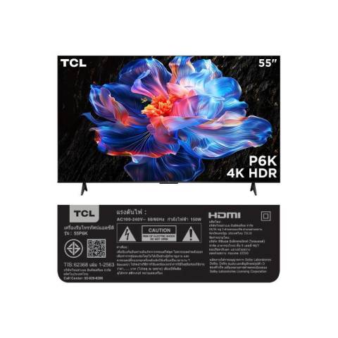 TCL ทีวี P6K Google TV 55 นิ้ว 4K UHD LED รุ่น 55P6K ปี 2025 ในราคา 14,990.00 บาท เติมเต็มความบันเทิงในบ้านให้ยิ่งใหญ่กว่าที่เคยด้วยภาพ 4K UHD คมชัดเต็มตา ดีไซน์ Metallic Bezel-less ขอบบางสวยหรู พร้อมระบบอัจฉริยะ Google TV ที่รวมคอนเทนต์และแอปโปรดไว้ในที่เดียว และเสียง Dolby Audio ที่ช่วยยกระดับทุกฉากให้สมจริงยิ่งขึ้น