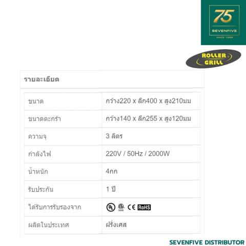 ROLLER GRILL เตาทอดไฟฟ้าตั้งโต๊ะ 3 ลิตร (รุ่น ROL1-RF3S) จากฝรั่งเศส ตัวช่วยทำเฟรนช์ฟราย ไก่ทอด ของทอดต่าง ๆ ให้กรอบอร่อยสม่ำเสมอ เหมาะทั้งร้านอาหาร คาเฟ่ ฟู้ดทรัค และครัวบ้านที่ต้องการอุปกรณ์มาตรฐานงานมืออาชีพ พร้อมรับประกัน 1 ปี และมีบริการอะไหล่