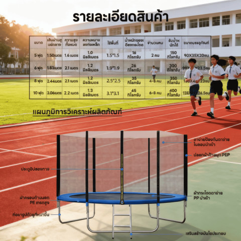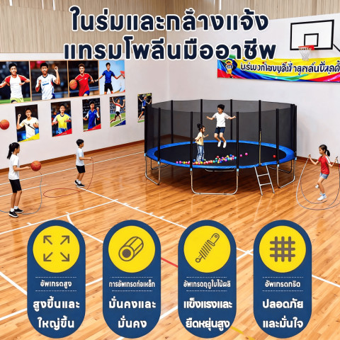 ตาข่ายมองเห็นชัด ช่วยกันตกและลดความเสี่ยง เหมาะทั้งเด็กและผู้ใหญ่ เล่นได้สบายใจมากขึ้นสปริงอัพเกรด หนาและแข็งแรง