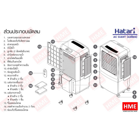 XXX-[HME] พัดลมไอเย็น HATARI รุ่น AC GIANT (42 ลิตร) แถม ICE PACK 2 ชิ้น ในราคา 5,113.60 บาท ช่วยเติมความเย็นสดชื่นให้พื้นที่ใช้งานได้อย่างมีประสิทธิภาพ เหมาะสำหรับบ้าน ร้านค้า ออฟฟิศ หรือพื้นที่ที่ต้องการลมเย็นต่อเนื่อง ด้วยถังน้ำขนาดใหญ่ 42 ลิตร ใช้งานได้นาน พร้อมฟังก์ชันครบ ทั้งแสดงอุณหภูมิ ตั้งเวลา และระบบความปลอดภัยแน่นหนา