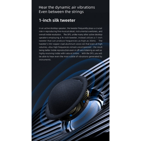 ทวีตเตอร์ผ้าไหม 1 นิ้ว ให้เสียงแหลมเนียน ละเอียด ได้ยินดีเทลเล็กๆ ของเครื่องดนตรี (รองรับความถี่สูงได้ถึง 35kHz)