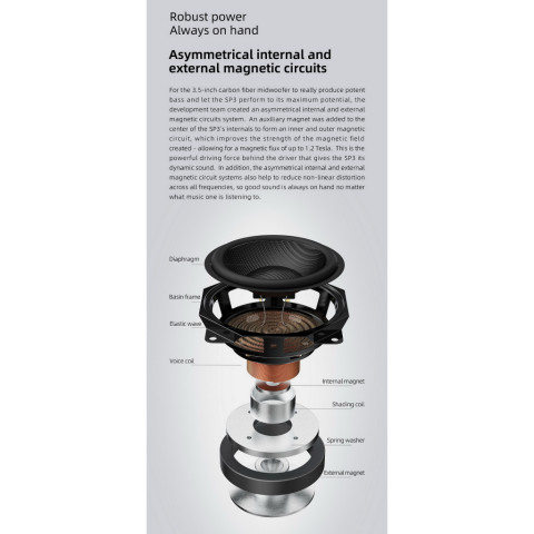 วงจรแม่เหล็กภายใน-ภายนอกแบบอสมมาตร ฟลักซ์แม่เหล็กสูง ช่วยลดความเพี้ยน ทำให้เสียงสะอาดขึ้นในทุกย่าน