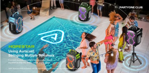 ไฟวิ่งสวยหลายโหมด เพิ่มความพรีเมียมและความสนุกให้ทุกงานAuracast Multi-Link เชื่อมหลายลำโพงพร้อมกัน