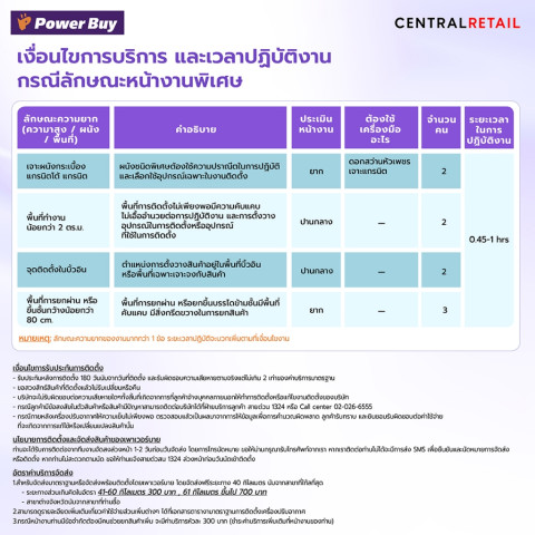 บริการติดตั้ง/บริการนอกเหนือเงื่อนไข อาจมีค่าใช้จ่ายเพิ่มเติม ชำระเงินสดกับเจ้าหน้าที่หน้างาน