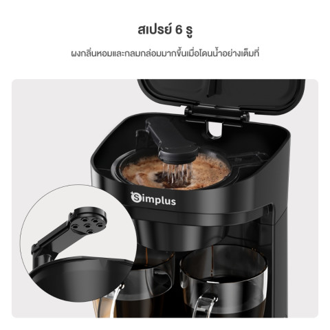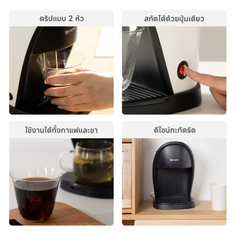 Simplus เครื่องชงกาแฟแบบดริป อเนกประสงค์ 2 ฟังก์ชัน (ชงกาแฟ/ชา) รุ่น KFJH018 ในสีขาว ความจุถังน้ำ 250 มล. ขนาดเล็กกะทัดรัด เหมาะสำหรับคนที่อยากได้กาแฟหอมๆ แบบดริปได้ง่ายในทุกวัน ไม่ว่าจะใช้ที่บ้าน ออฟฟิศ หรือหอพัก ก็จัดวางและจัดเก็บสะดวก พร้อมระบบสกัดสม่ำเสมอด้วยหัวจ่ายน้ำ 6 รู ให้รสชาติเข้มกลมกล่อมในเวลาไม่นาน