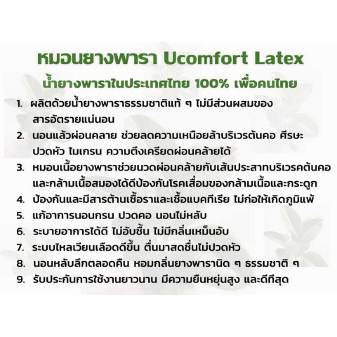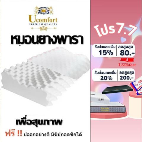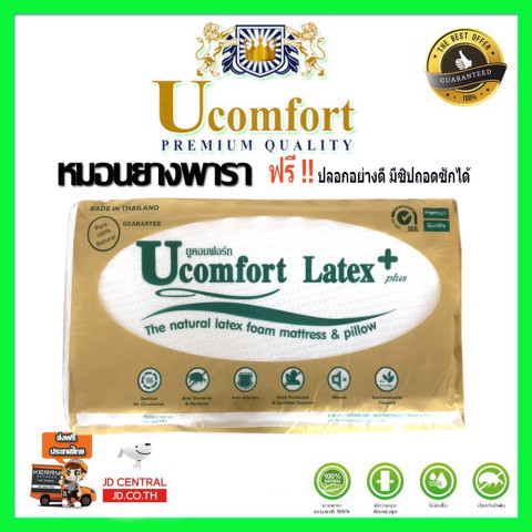UCOMFORT หมอนยางพาราแท้ 100% Premium Gold มาพร้อมปลอกหมอนติดซิป (ฟรี) ให้คุณตื่นมาสดชื่นทุกเช้า ด้วยสัมผัสแน่นนุ่ม รองรับได้พอดีทั้งศีรษะ คอ บ่า ไหล่ ช่วยลดแรงกดทับ ลดอาการปวดคอ และช่วยลดการนอนกรน เหมาะสำหรับคนที่อยากยกระดับการนอนให้สบายแบบหมอนเพื่อสุขภาพ