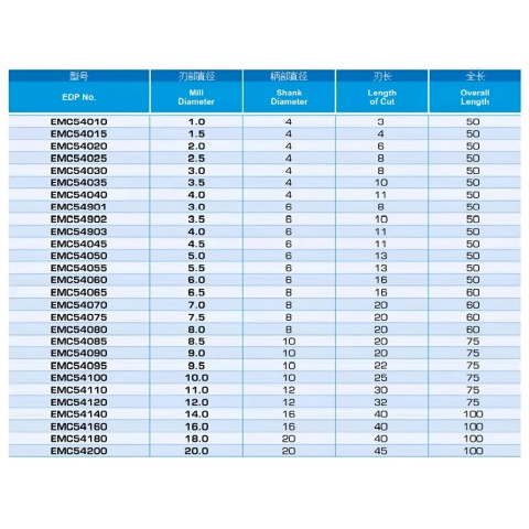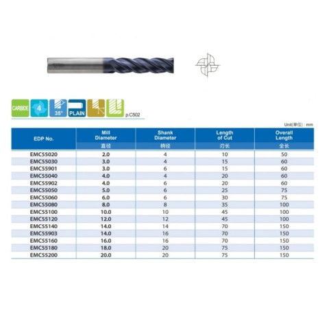 เอ็นมิลคาร์ไบด์ 4 ฟัน Carbide ENDMILL 4F (9-20 มม.) ยี่ห้อ YG รุ่น EMC54/EMC55 ราคา 5,900.00 บาท