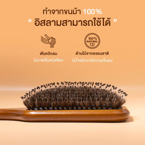 ขนแปรงทำจากขนหมูป่าแท้ผสมขนไนลอน ช่วยสางผมได้ดีและหวีลื่น