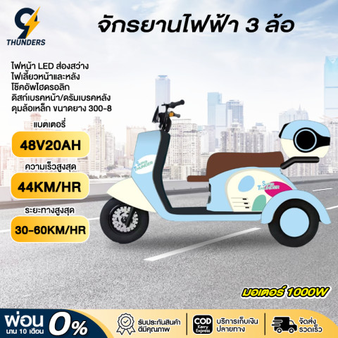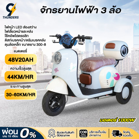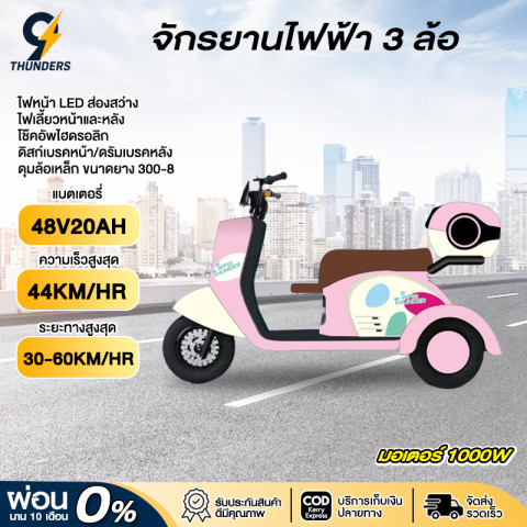 9Thunders_EV รถสามล้อไฟฟ้า มอเตอร์ 1000W แบต 48V20A สีแดง ราคา 17,099.00 บาท คือทางเลือกที่คุ้มค่าสำหรับการใช้งานในชีวิตประจำวัน ขับขี่มั่นคง 3 ล้อ ขนของได้คล่องตัว เหมาะทั้งใช้งานในชุมชน ตลาด ร้านค้า หรือวิ่งรับ-ส่งของระยะใกล้ถึงกลาง ด้วยพลังมอเตอร์ 1000W และระยะทางต่อการชาร์จที่ทำได้สูงสุดราว 50 กม. (ช่วงโดยประมาณ 30–60 กม. ขึ้นอยู่กับแบตเตอรี่และสภาพการใช้งาน)