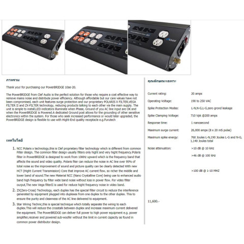 New PowerBRIDGE 20 Series พัฒนาวงจรใหม่ทั้งหมด เพิ่มความสามารถในการส่งผ่านกระแสสูงขึ้นกว่าเดิม 25% (จาก 16A เป็น 20A) พร้อมใช้อุปกรณ์ภายในที่มีประสิทธิภาพสูงขึ้น และเลือกใช้ปลั๊กคุณภาพ 20A Isolated Ground Hospital Grade เพื่อให้ได้โทนเสียงและรายละเอียดที่ดีขึ้นอย่างชัดเจน
