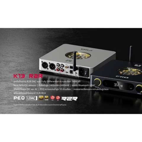 [ประกันศูนย์ไทย] FiiO K13 R2R DAC/AMP ตั้งโต๊ะ แบบ R2R 24-bit รองรับโหมด NOS/OS แบบคู่ คือ DAC/AMP ตั้งโต๊ะที่ออกแบบมาเพื่อคนรักเสียงเพลงที่ต้องการ “ความเป็นธรรมชาติ” และ “ความเที่ยงตรง” ของโทนเสียงแบบ R2R แท้ พร้อมวงจรขยายแบบ Fully Balanced ให้สัญญาณสะอาด รายละเอียดชัด เวทีเสียงโปร่ง และไดนามิกเต็มอารมณ์ ไม่ว่าจะใช้กับหูฟังขับยากหรือเชื่อมต่อเป็นแหล่งสัญญาณให้ชุดเครื่องเสียงภายนอกก็ทำได้ครบจบในตัวเดียว