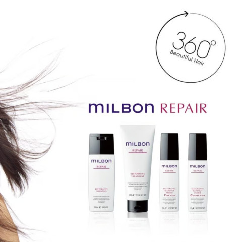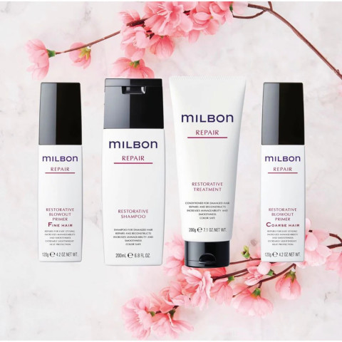 MILBON Repair Restorative Shampoo / Treatment / Blowout Primer Hair Treatment แชมพู–ทรีทเมนต์–ไพรเมอร์บำรุงผมจากประเทศญี่ปุ่น สำหรับผมเสียสะสม ผมผ่านการทำเคมีบ่อย (ทำสี ยืด ดัด ฟอก) ช่วยฟื้นฟูให้เส้นผมกลับมาแข็งแรง นุ่มลื่น เงางาม และจัดทรงง่าย ด้วยเทคโนโลยี Dual-Repair ที่ซ่อมแซมเส้นผมทั้งภายในและภายนอก พร้อมส่วนผสมเด่น SSVR-Silk™ และ CMADK™ เพื่อการบำรุงแบบล้ำลึกอย่างมืออาชีพ