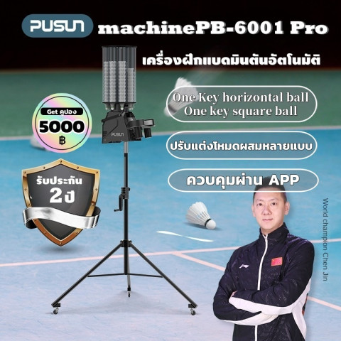 【พร้อมส่ง/รับประกัน 2 ปี】PUSUN PB-6001 Pro เครื่องฝึกแบดมินตันอัตโนมัติ Portable Badminton Ball Machine with APP