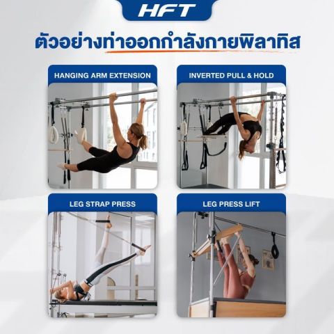 ออกแบบเป็น Trapeze Table สำหรับการฝึกพิลาทิสแบบหลากหลายท่า: นอน นั่ง หรือยืนบนเตียงได้