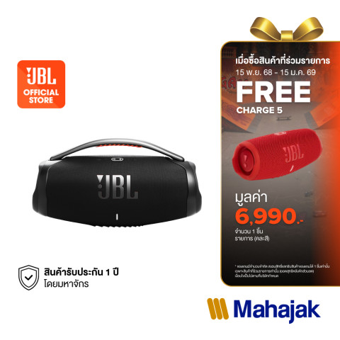 เติมความมันให้ทุกโมเมนต์ด้วยพลังเสียงที่ “ดังจริง เบสจริง” จาก JBL Boombox 3 ลำโพงคู่ใจสำหรับทุกกิจกรรม พร้อมลุยทุกที่ด้วยมาตรฐานกันน้ำกันฝุ่น และแบตอึดตลอดวัน