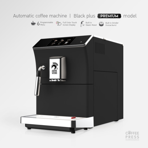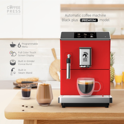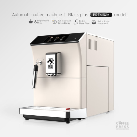 Coffee Press เครื่องชงกาแฟสด เอสเปรสโซ่อัตโนมัติ Full Automatic Espresso Coffee Machine | Black Plus Premium Model คือคำตอบของคนรักกาแฟที่อยากได้รสชาติระดับคาเฟ่ในบ้านหรือออฟฟิศ เพียงเปิดเครื่อง เติมน้ำ เติมเมล็ดกาแฟ แล้วแตะเลือกเมนูจากหน้าจอ เครื่องจะบด–สกัด–ผสมให้แก้วต่อแก้วแบบอัตโนมัติ ได้กาแฟสดใหม่ หอมเข้ม พร้อมดื่มทุกวัน ในราคา 23,987.00 บาท
