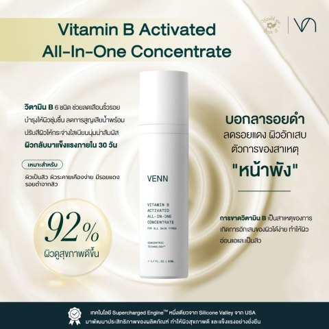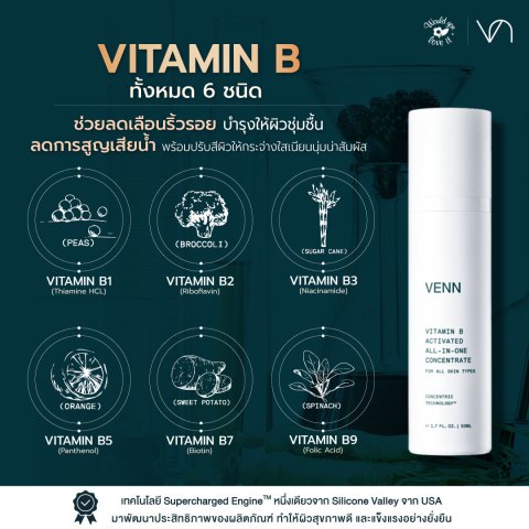 โปรสุดคุ้ม 1 แถม 1 กับ VENN (เวนน์) Vitamin B เซรั่มบำรุงผิวที่ออกแบบมาเพื่อช่วยให้ผิวดูแข็งแรง เรียบเนียน และกระจ่างใสขึ้นอย่างเป็นธรรมชาติ เหมาะสำหรับผู้ที่ต้องการฟื้นบำรุงผิวที่อ่อนล้า หมองคล้ำ หรือเผชิญมลภาวะในชีวิตประจำวัน ในเซ็ตได้รับทั้งหมด 2 ขวด ขนาด 50 ml เติมเต็มรูทีนบำรุงผิวให้คุ้มค่าและต่อเนื่อง