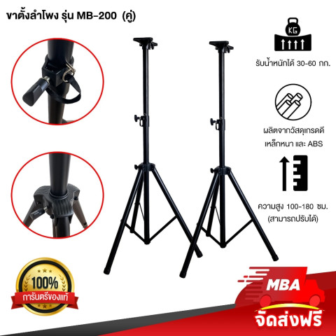 ขาตั้งลำโพง MBA จำนวน 2 ชุด (รับน้ำหนักได้ 50 กก. ปรับสูงได้ 180 ซม.)