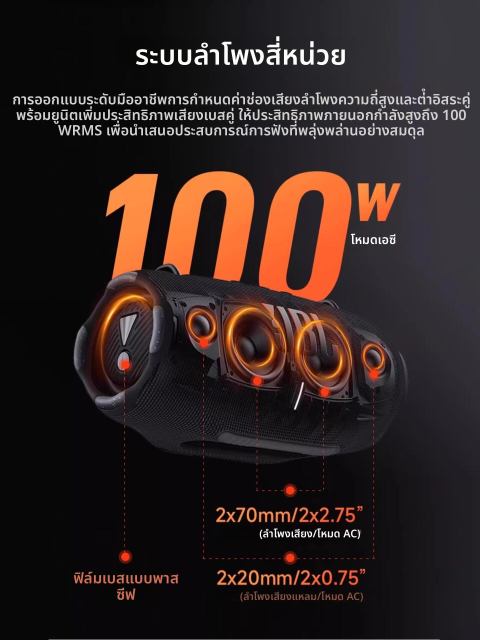 คุณสมบัติเด่น: กันน้ำ, เบสลึกแบบไฮไฟ, ดีไซน์ Retro Wind
