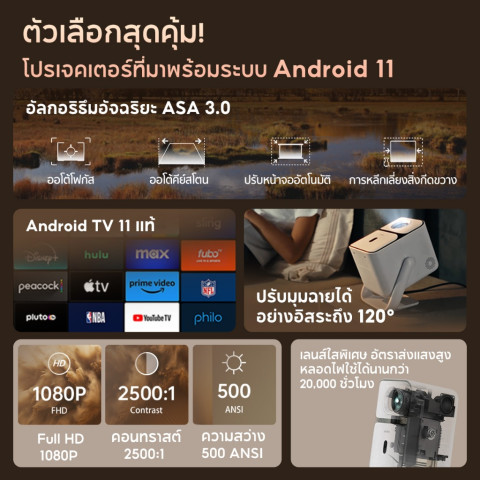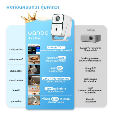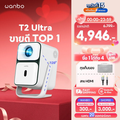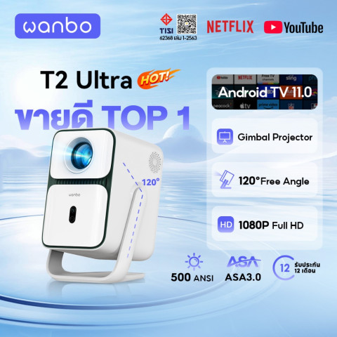 [Hot] Wanbo T2 Ultra 500 ANSI Projector โปรเจคเตอร์ พกพา การป้องกันการสั่น Android 11.0 การอัพเกรดที่ครอบคลุม