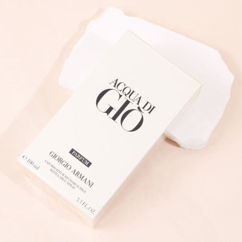 Giorgio Armani Acqua Di Gio Parfum 100ml น้ำหอมสำหรับผู้ชายแนวกลิ่น Woody Aquatic ที่ถ่ายทอดเสน่ห์ของท้องทะเลอย่างมีชั้นเชิง ผสานความสดชื่นของมะกรูดเข้ากับความเข้มลุ่มลึกของกลิ่นไอทะเล เติมมิติความสุขุมด้วยสมุนไพรหอมอย่างโรสแมรี่และคลารีเซจ ก่อนทิ้งท้ายด้วยความนุ่มขรึมของอินเซนส์และพิมเสน (Patchouli) ให้ความรู้สึกสะอาด เท่ และมั่นใจในทุกโอกาส