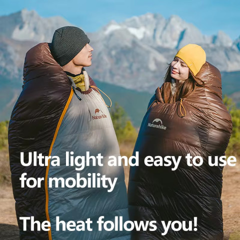 ถุงนอน Naturehike Snowbird Down กันน้ำและน้ำหนักเบา รุ่นถุงนอนมัมมี่ที่ออกแบบมาสำหรับสภาพแวดล้อมกลางแจ้งที่โหดและชื้นเย็น ตั้งแต่แคมป์ปิคนิกไปจนถึงทริปอุณหภูมิติดลบ โดดเด่นด้วยผ้าไนลอนกันน้ำ 20D และไส้เป็ดดาวน์คุณภาพสูง ให้ความอุ่นยาวนาน กักเก็บความร้อนได้ดี และพกพาสะดวก พร้อมรายละเอียดกันลม/กันหนาวรอบด้านเพื่อการนอนที่มั่นใจในทุกทริป