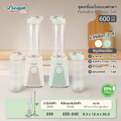 หากคุณกำลังมองหาเครื่องปั่นแบบพกพาที่ทั้งสวย ใช้งานง่าย และปลอดภัย Seagull Portable Blender Set 600 ml คือผู้ช่วยคู่ครัวและคู่ตัวที่ตอบโจทย์ทั้งสุขภาพและไลฟ์สไตล์ของคุณได้ในเครื่องเดียว