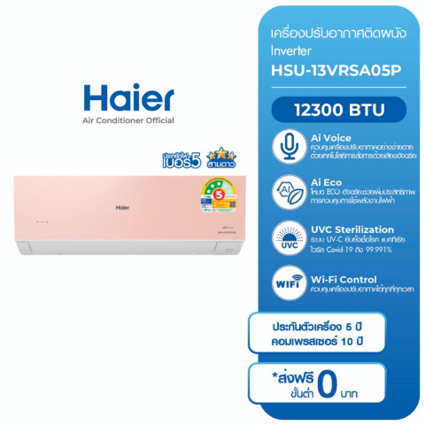 สัมผัสอากาศเย็นสบาย ล้ำสมัยยิ่งขึ้นด้วย Haier แอร์ Inverter Wi-Fi สั่งงานด้วยเสียง รุ่น VRSA (UV Cool Voice) เครื่องปรับอากาศดีไซน์ทันสมัย ที่ผสานเทคโนโลยีอินเวอร์เตอร์ประหยัดไฟ ฟังก์ชันสั่งงานผ่านสมาร์ทโฟน และการควบคุมด้วยเสียง เพื่อไลฟ์สไตล์ยุคดิจิทัลอย่างแท้จริง มาพร้อมขนาดความเย็นให้เลือกทั้ง 12,300 BTU และ 18,200 BTU เหมาะสำหรับห้องนอน คอนโด หรือห้องนั่งเล่นที่ต้องการความเย็นสบายอย่างต่อเนื่องในทุกช่วงเวลา