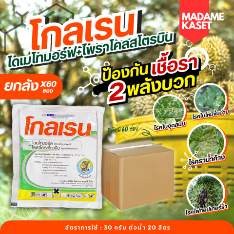 ยกลังสุดคุ้ม x60 ซอง (จำกัดออเดอร์ละ 1 ลัง) โกลเรน 100 กรัม (ไดเมโทมอร์ฟ + ไพราโคลสโตรบิน) สูตรเฉพาะเพื่อป้องกันและกำจัดโรคเชื้อราที่สำคัญในพืช ปกป้องแปลงปลูกของคุณอย่างมีประสิทธิภาพ เหมาะสำหรับเกษตรกรที่ต้องการความคุ้มค่าและผลผลิตแข็งแรงสม่ำเสมอทั้งฤดูกาล