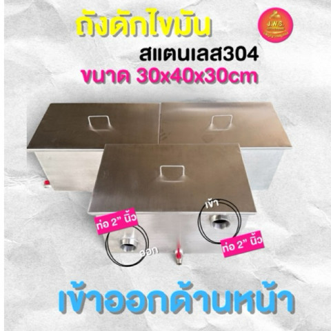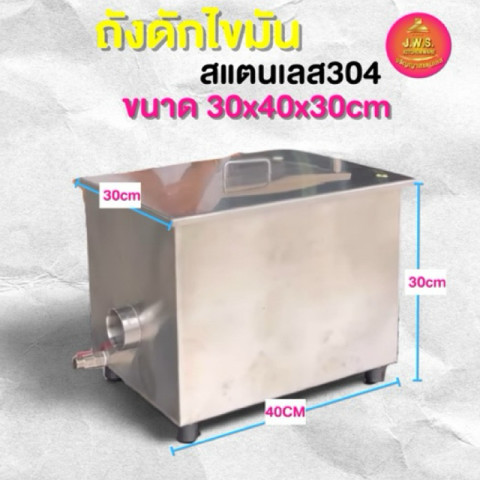 ถังดักไขมันสแตนเลส 304 ขนาด 30x40x30cm ทนความร้อนสูง ออกแบบมาเพื่อช่วยแยกไขมันและเศษอาหารออกจากน้ำทิ้งได้อย่างมีประสิทธิภาพ เหมาะสำหรับใช้ในครัวเรือน ร้านอาหาร ร้านกาแฟ และธุรกิจอาหารทุกประเภท ช่วยลดการอุดตันของท่อน้ำทิ้ง ยืดอายุการใช้งานของระบบท่อ และทำให้การทำความสะอาดเป็นเรื่องง่าย