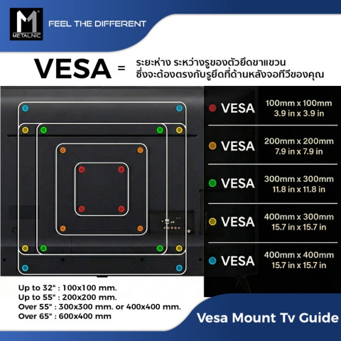 รองรับมาตรฐาน VESA: 200x200, 400x200, 300x300, 400x400, 600x400 มม.