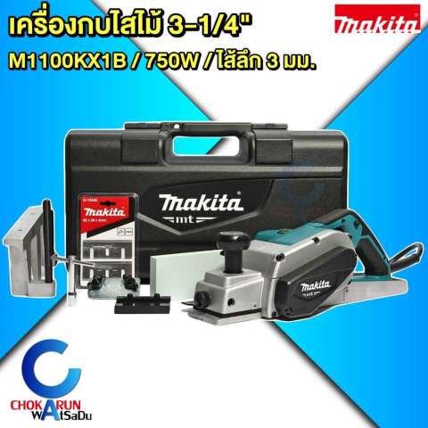 Makita M1100KX1B เครื่องไสไม้ (กบไฟฟ้า) 750W ขนาด 3 นิ้ว เครื่องมือคู่ใจสำหรับงานไสแต่งผิวไม้ให้เรียบเนียน รวดเร็ว และได้ความแม่นยำสูง เหมาะทั้งงานช่างมืออาชีพและงาน DIY ด้วยมอเตอร์กำลังแรง 750 วัตต์ พร้อมหัวคัตเตอร์ความเร็วสูง ช่วยกินเนื้อไม้ได้สม่ำเสมอ ลดรอยคลื่นบนผิวงาน และทำงานต่อเนื่องได้อย่างมั่นใจในความทนทานตามมาตรฐาน Makita