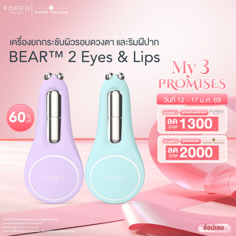FOREO BEAR 2 eyes & lips เครื่องยกกระชับผิวรอบดวงตา ริมฝีปาก และจุดเล็กเฉพาะจุด สี Arctic Blue คือคำตอบสำหรับคนที่อยากให้ “คิ้วดูยก ตาดูสดใส ปากดูอิ่มฟู” โดยไม่ต้องพึ่งเข็มหรือการผ่าตัด ด้วยเทคโนโลยี Microcurrent กระแสไฟฟ้าระดับต่ำที่ช่วยกระตุ้นกล้ามเนื้อและความยืดหยุ่นของผิวอย่างอ่อนโยน เหมาะมากกับบริเวณที่บอบบางอย่างรอบดวงตาและริมฝีปาก